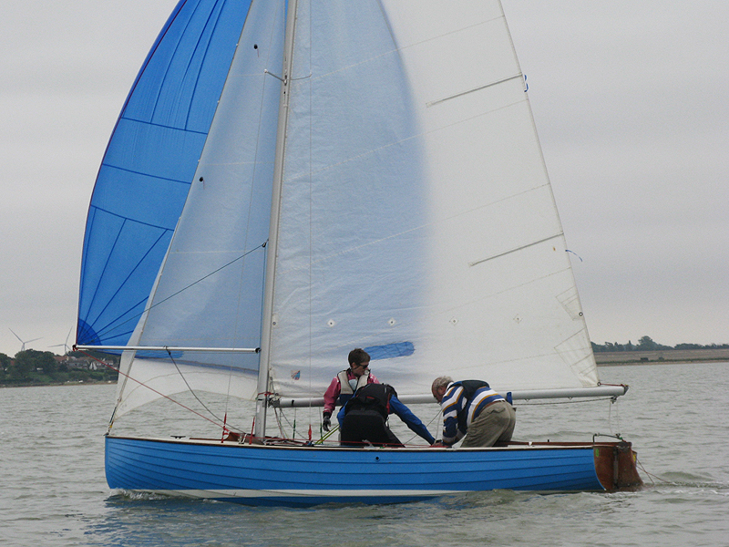 David and Celia Charlton’s purchase of Sarah Louise means that they no longer need to borrow Blue Peter for Pyefleet Week, however, Adrian and Judith Gibbons have most generously offered her to Chris and Gill Jordan who will be racing her instead.